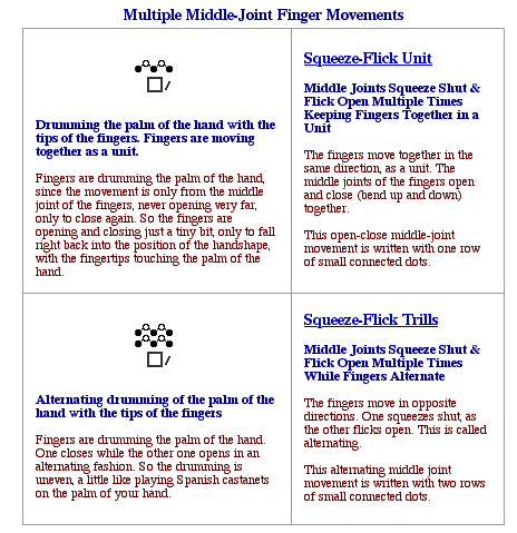 October 1, 2001 Writing Finger Trills continued.... Here is a diagram showing Squeeze Trills. I couldn't think of any signs for ASL using this motion... | |||||