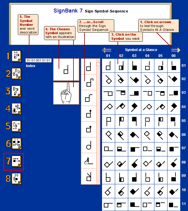Click on SignBank 7: the Sign-Symbol-Sequence. You can search for a