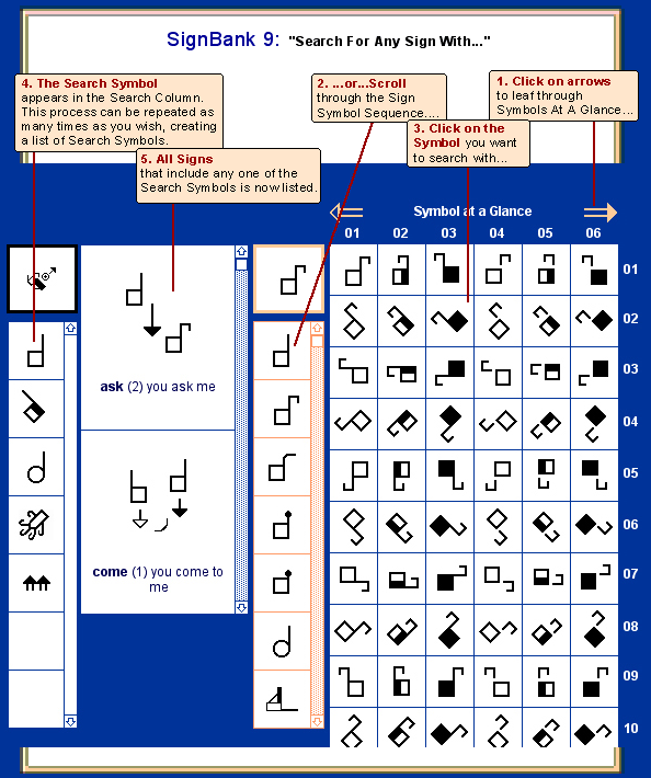 SignBanks 9-16 are all "Search by Symbol" routines (SignBank 9 used