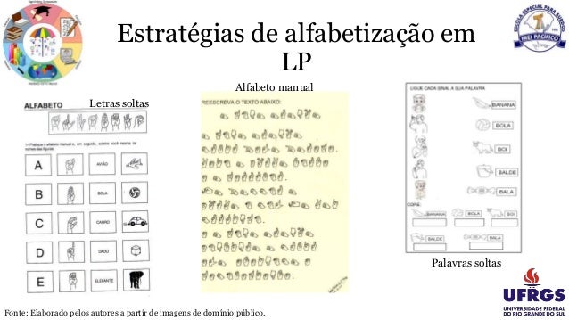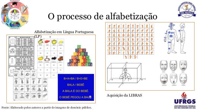 10. O processo de alfabetização Alfabetização em Língua Portuguesa (LP) Aquisição da LIBRAS Fonte: Elaborado pelos autores a partir de imagens de domínio público.