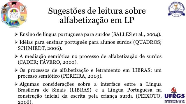 SALLES, H. M. M. L. et al. Ensino de língua portuguesa para surdos: caminhos para a prática pedagógica. Brasília, DF: MEC, SEESP, 2004.